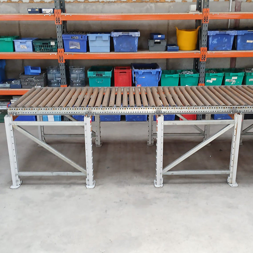 This is one 2.5m full bed section with frames and legs and rollers. Large quantity available. Simply add more sections to make conveyor longer.
